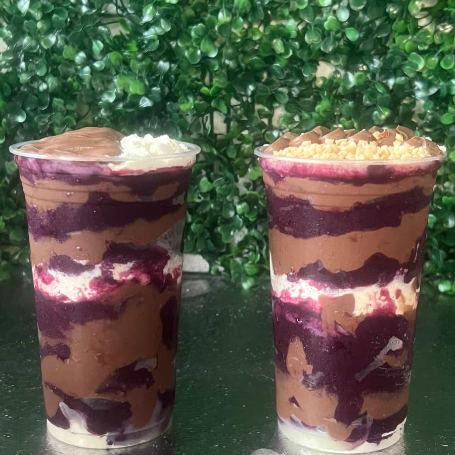 2 Saborosos Copos De Açai Com Bastante Chocolate CREMOSO, Leite condensado, granola e Leite Ninho