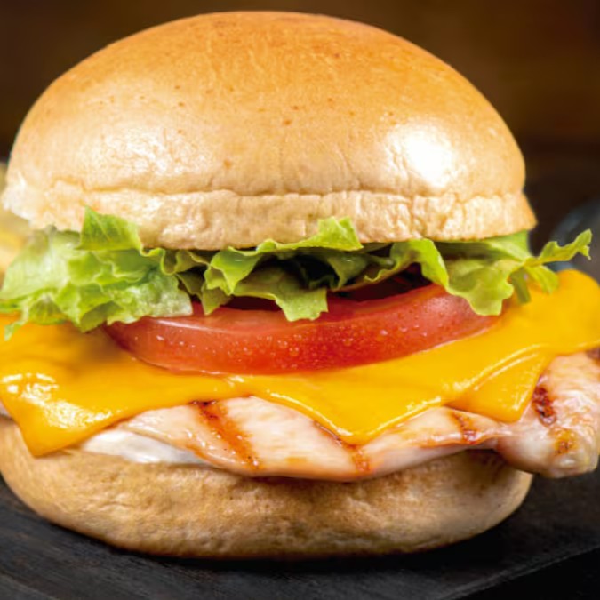 Filé de frango de 120g no pão brioche, com cheddar derretido, alface fresca, tomate maduro, cebola roxa e maionese da casa. Leve, fresco e irresistível!