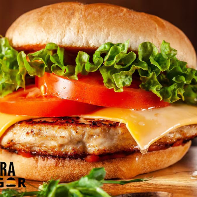 Filé de frango de 120g no pão brioche, com bacon crocante, cheddar derretido, alface fresca, tomate maduro, cebola roxa e maionese da casa. Leve, crocante e irresistível!