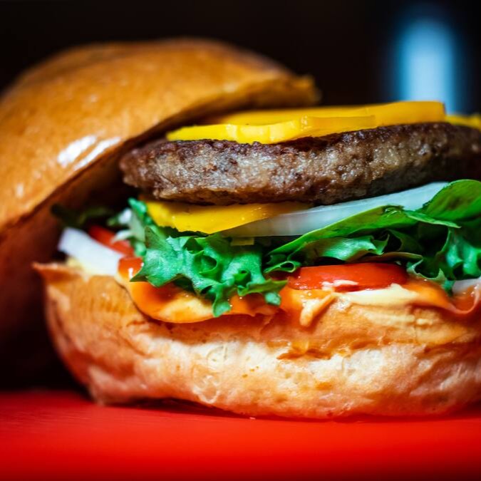 Hambúrguer de 100g no pão brioche, com bacon, cheddar, alface, tomate, cebola roxa e escolha de maionese verde ou defumada. Sabor em dobro!