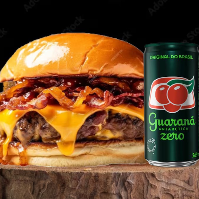 Hambúrguer bovino de 160g no pão brioche, com cheddar derretido, bacon crocante, cebola caramelizada e maionese da casa. Acompanha Guaraná Antarctica 269ml. Perfeito e saboroso!