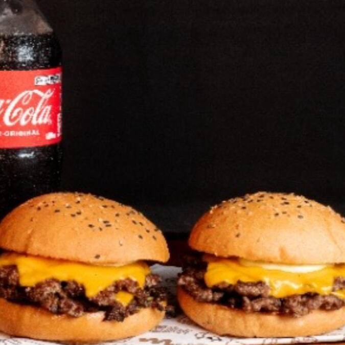 Dois smash burgers com cheddar e maionese da casa no pão brioche, acompanhados de Coca-Cola Original 600ml. Dupla perfeita pra matar a fome!