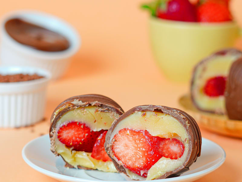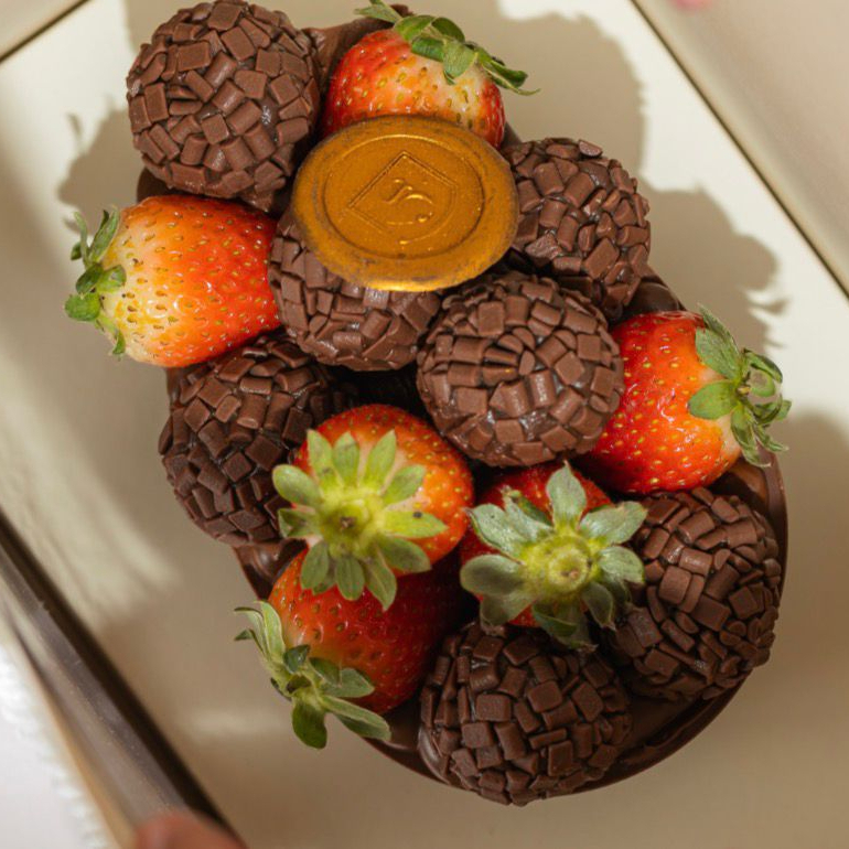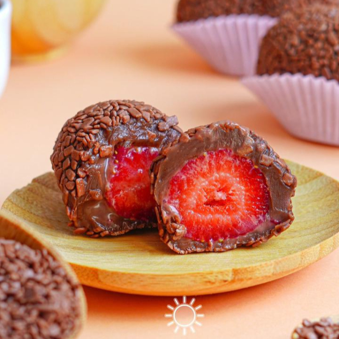 Este bombom tentador é cuidadosamente confeccionado com morango fresco envolvido no brigadeiro branco, mergulhado em uma camada de chocolate ao leite de alta qualidade. O contraste entre o sabor ligeiramente ácido do morango e a doçura irresistível do chocolate, cria uma combinação perfeitamente harmoniosa.
