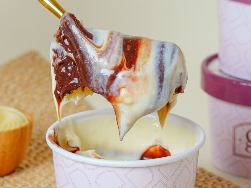 Sorvete de baunilha batido com Nutella e pedaços de Ferrero Rocher, servido com borda cremosa de Nutella. Uma experiência intensa e indulgente, que combina cremosidade, avelãs e o sabor inconfundível do clássico chocolate.
