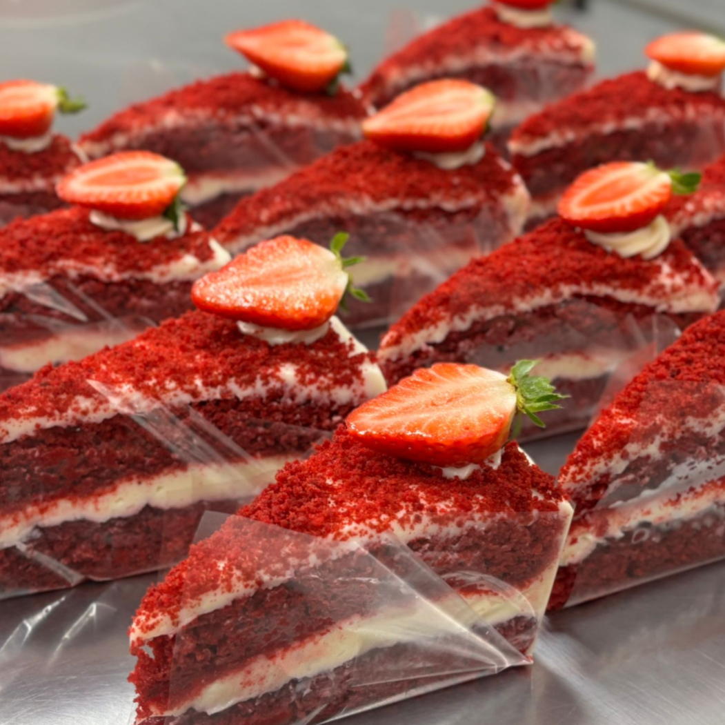 A combinação perfeita entre sabor e textura. Massa Red Velvet macia e úmida, Recheio suave de cream cheese e geleia artesanal de frutas vermelhas.
