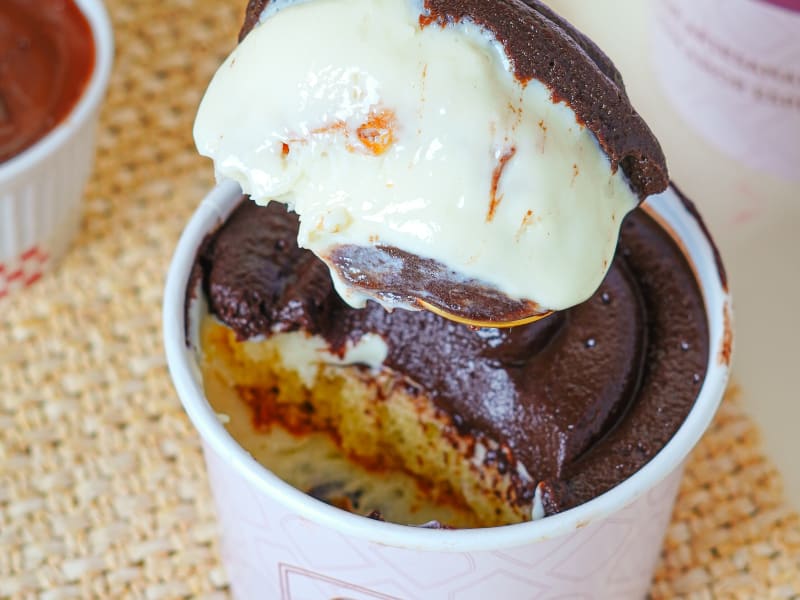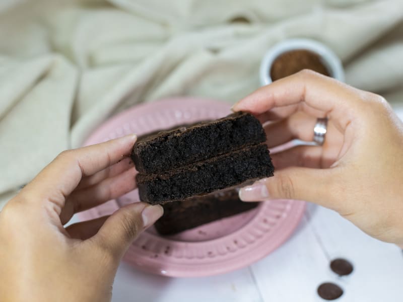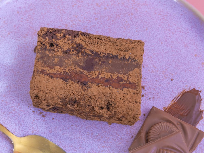Unidade de brownie hiper cremoso, de uma textura surreal.