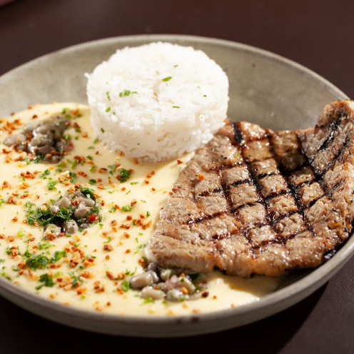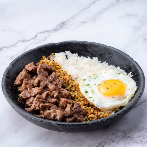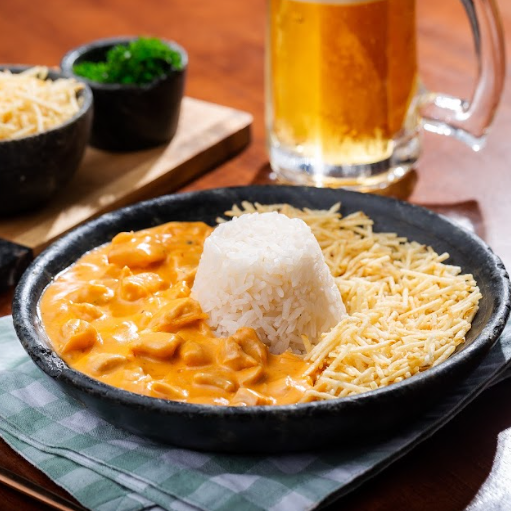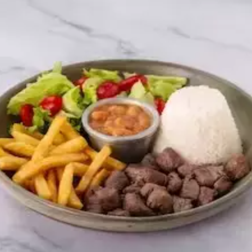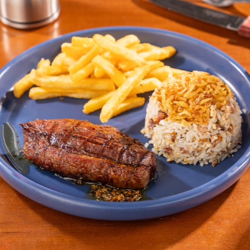 Deliciosas iscas de filé mignon 150g ao molho hot, arroz branco, ovo frito e farofa especial.