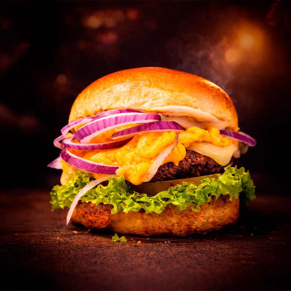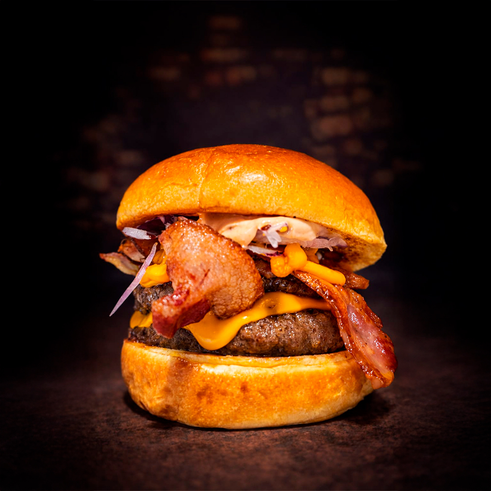 Dois suculentos hambúrgueres de 100g cada, cheddar derretido, bacon crocante, cebola roxa fresca e o toque especial exclusivo Cassia Burgers. Uma combinação clássica, mas com personalidade única!