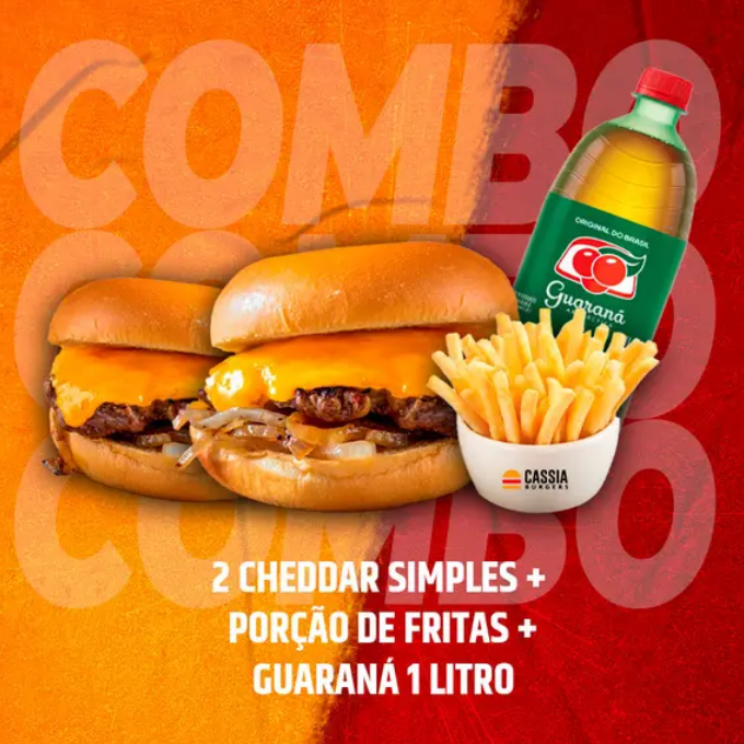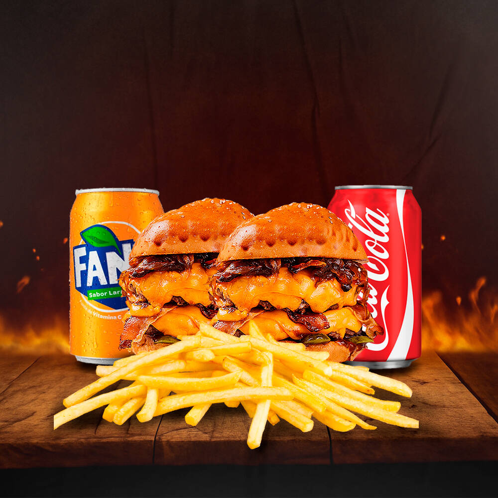 2 Duplo Cheddar + 2 Refri lata + Fritas especial M