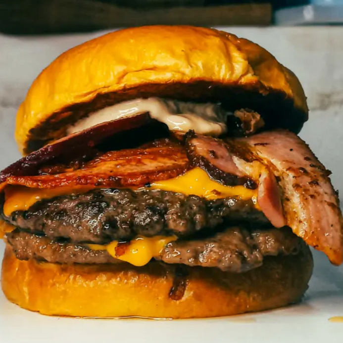 Este delicioso lanche combina a maciez do pão brioche artesanal com a riqueza de sabor de três suculentos hambúrgueres artesanais. Para torná-lo ainda mais irresistível, é regado com um molho especial, receita secreta da chef, e coberto com uma generosa camada de autêntico queijo cheddar. Deliciosas tiras crocantes de bacon adicionam uma complexidade de sabores que satisfaz todos os paladares. Uma
