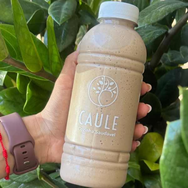 Nosso shake de chocolate com banana! :) Feito com leite desnatado, banana congelada, pasta de amendoim e whey de chocolate! contém 15g de proteína!