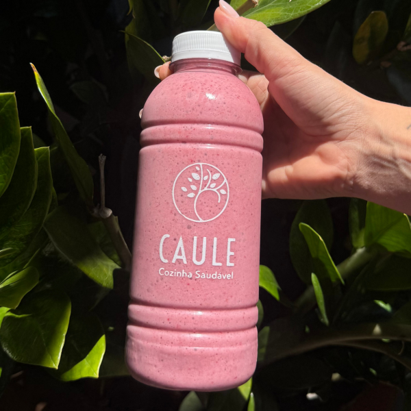 Morango congelado, Whey Protein (sabor baunilha) e Leite Desnatado