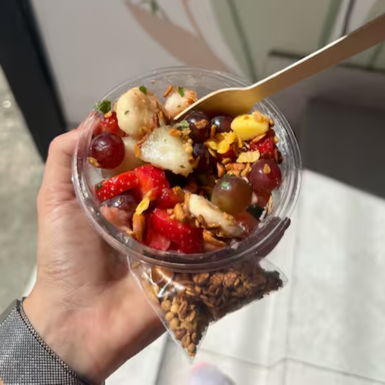 Nossa salada de frutas! :) 250g de frutas sazonais selecionadas com toque de hortelã. Acompanha granola zero açúcar. Serve 1 pessoa