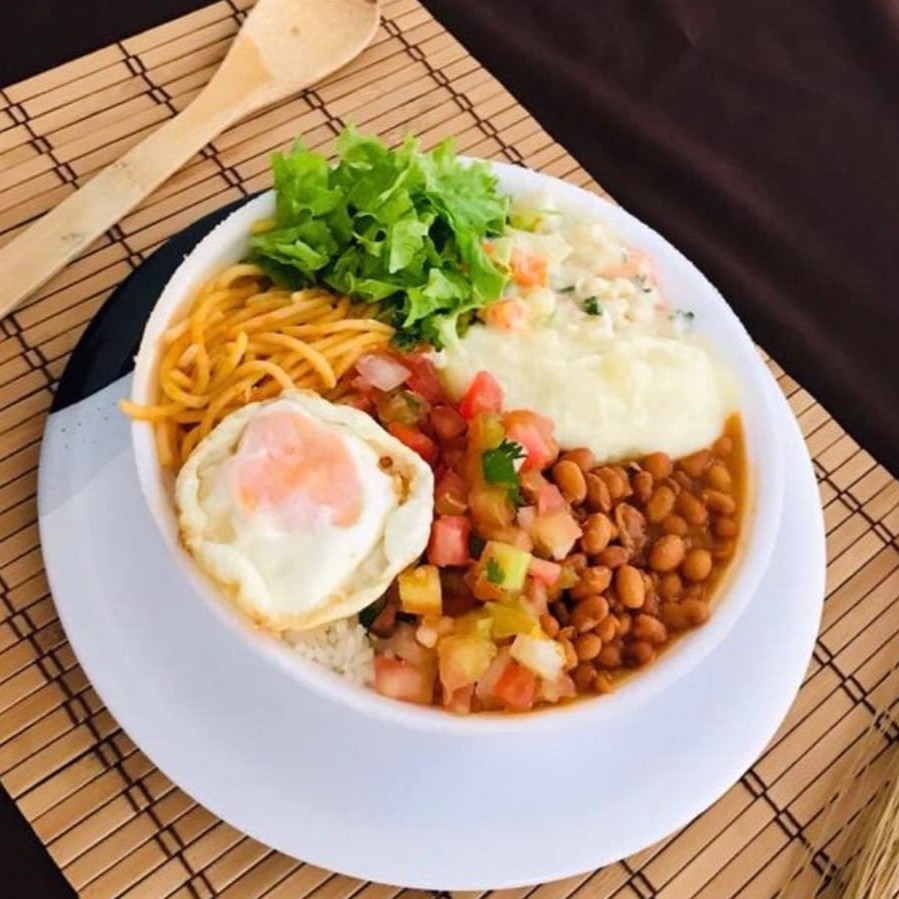 Arroz, Feijão de Caldo, Macarrão, Verduras do Dia, Saladas do Dias, Ovo Frito.