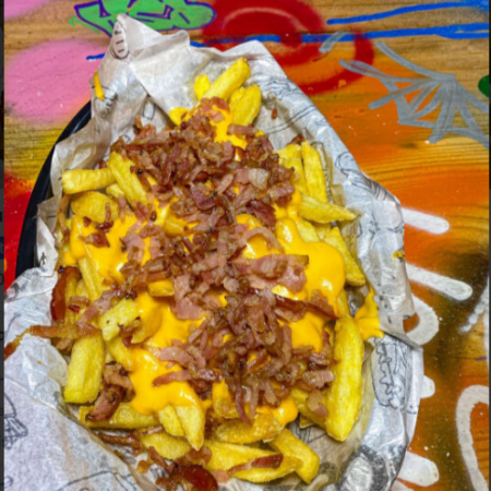 Batata palito com chedda e bacon