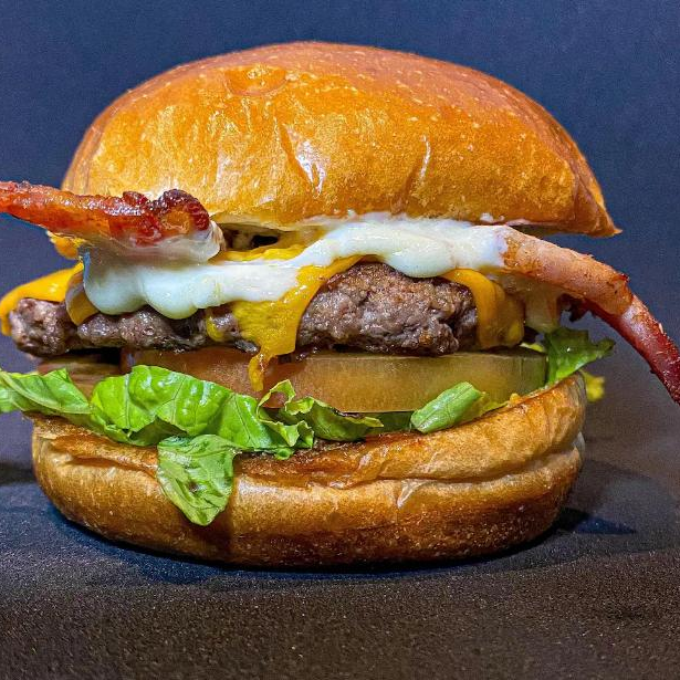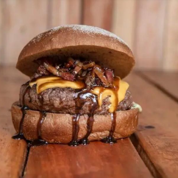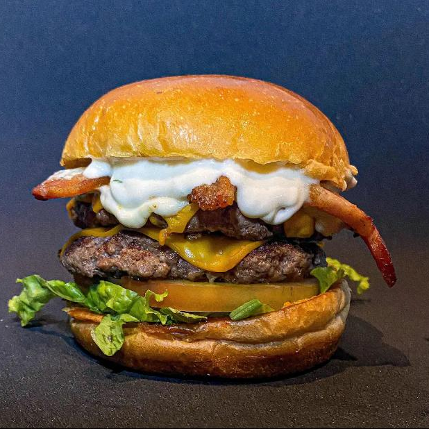 2 Hamburgueres de 100g cada, queijo chedda, bacon, salada, molho da casa e pão brioche