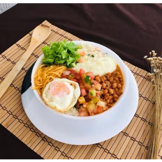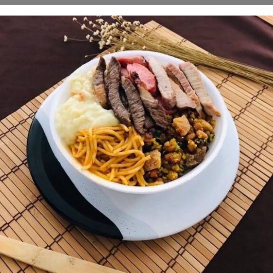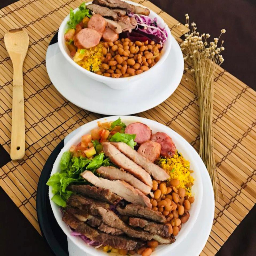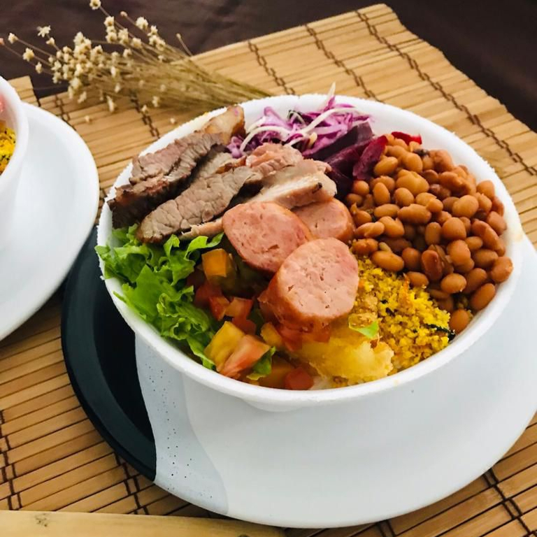 Arroz Branco, Feijão tropeiro ou caldo, Macarrão , Verduras do dia , Saladas da casa, Carne de panela ou Churrasco