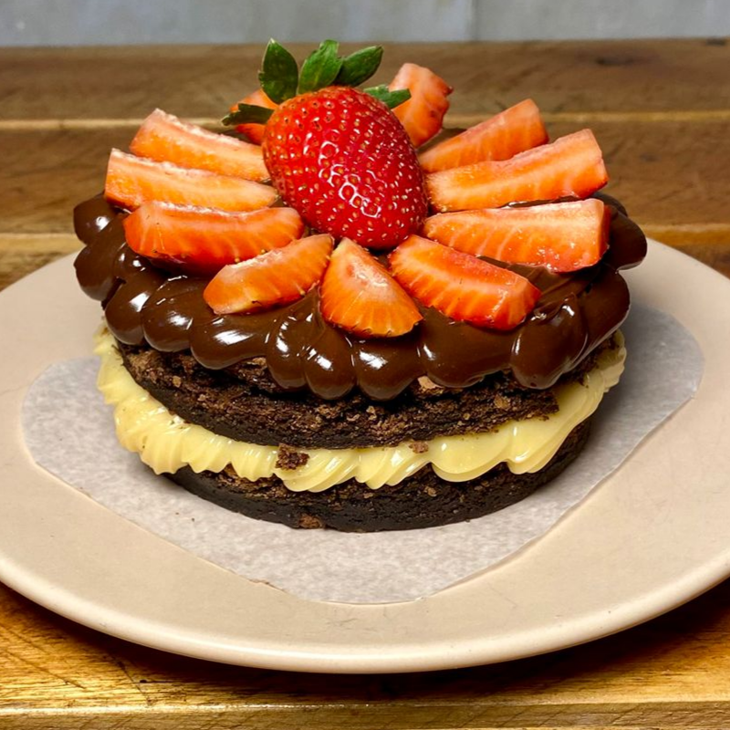eito no formato Naked esta é nossa deliciosa Torta Brownie feito em camadas. Recheado no meio com Ninho Brigaduco Topo com Nutella Original Morangos Frescos (350g)