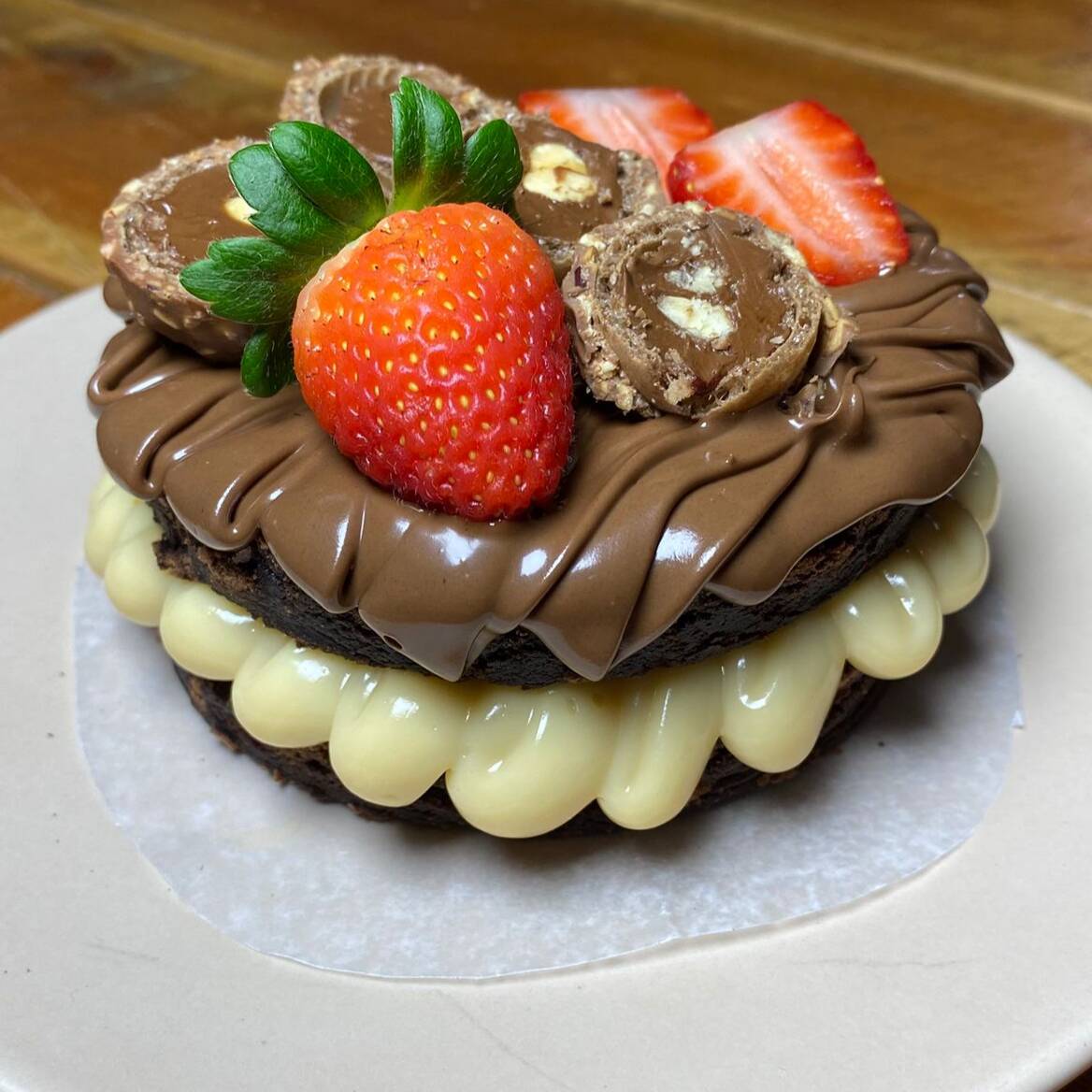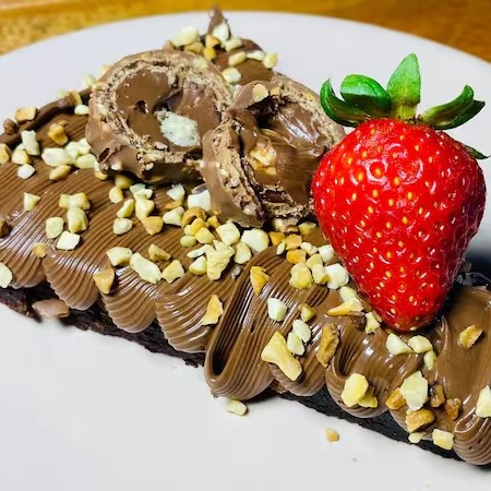 Nutella, Pedaços de Castanha de Caju, Ferrero Rocher, Morango Fresco, Brownie Brigaduco. Aprox. 185g