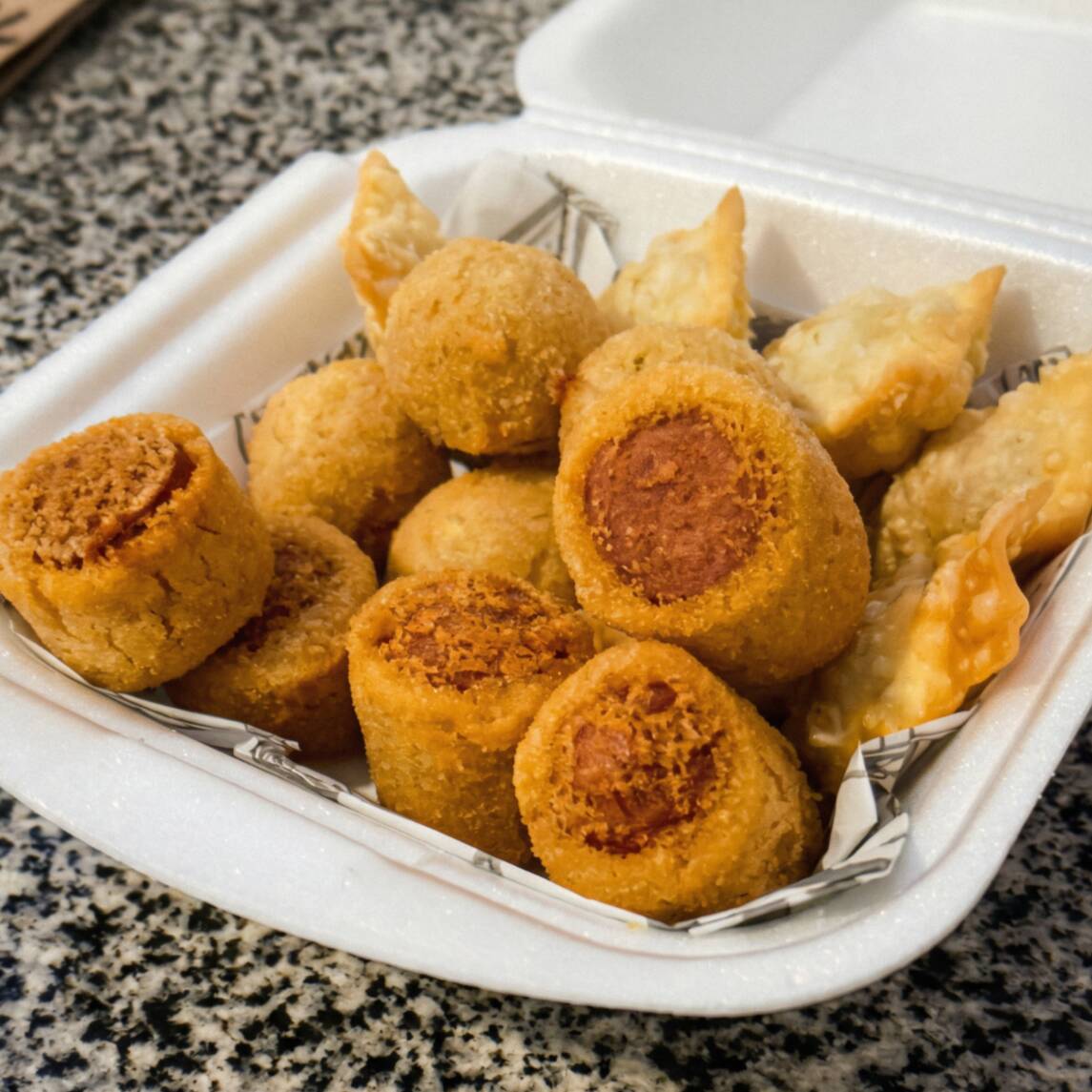 25 Salgadinhos Fritos na Hora | Você Escolhe os Sabores! Montamos o seu combo com até 5 sabores diferentes. Fritamos na hora do pedido para chegarem quentinhos e crocantes até você. Entrega Rápida e Grátis Salgadinhos de 20g – Padrão Festa Sabores disponíveis: Coxinha, Kibe, Bolinha de Queijo, Risole de Milho, Enroladinho de Salsicha e Mini Pastel de Carne.