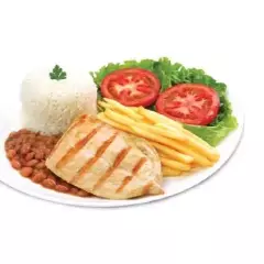 Filé de Peito de Frango bem grelhadinho, feito na hora e com tempero especial. Acompanha Arroz, feijão de caldo, macarrão, farofa e salada.