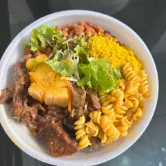 Acompanhamento: arroz, feijão, farofa, salada e macarrão