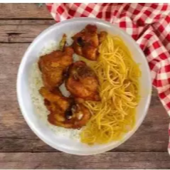Frango Frito com tempero especial. Acompanha Arroz, feijão de caldo, macarrão, farofa e salada.