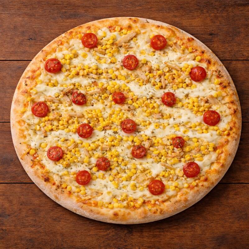 molho, mussarela, frango, Catupiry original, milho, e oregano.