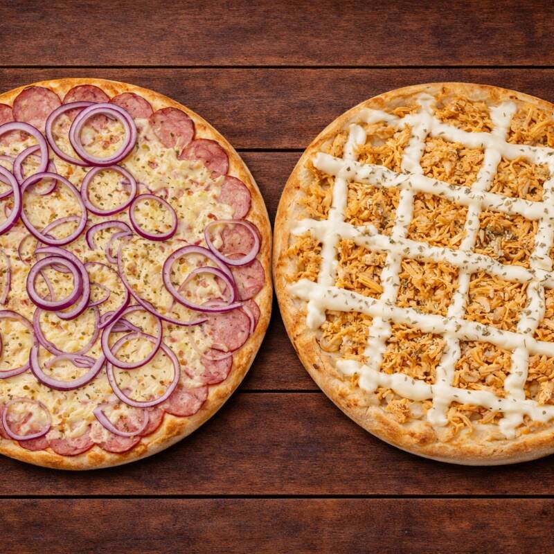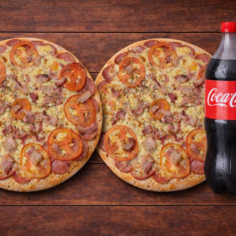 2 Pizzas + 1 Coca 2l 1 Frango Requeijão. 1 Calabresa