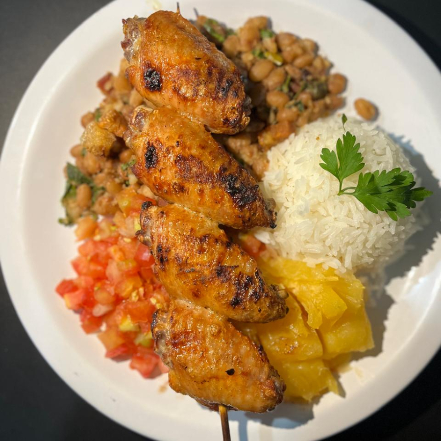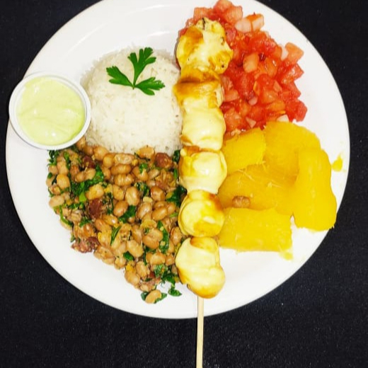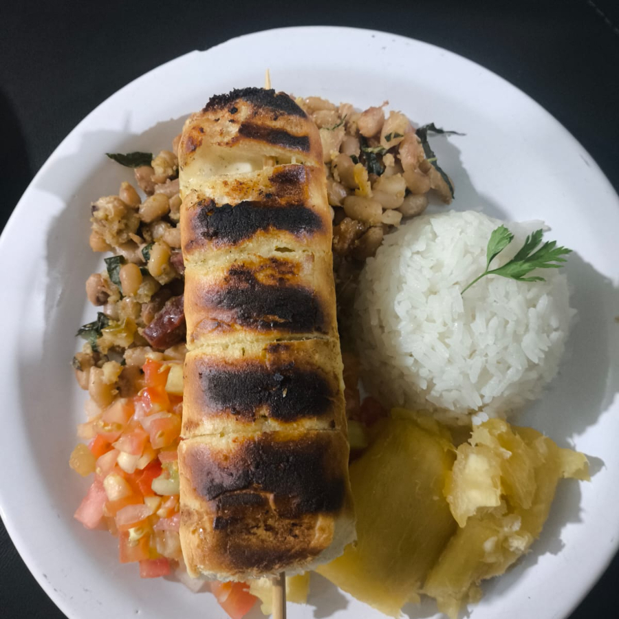 DELICIOSA JANTINHA DE FRANGO COM BACON ENROLADINHO, JÁ ACOMPANHA MANDIOCA COZIDA , VINAGRETE, ARROZ BRANCO E FEIJÃO TROPEIRO