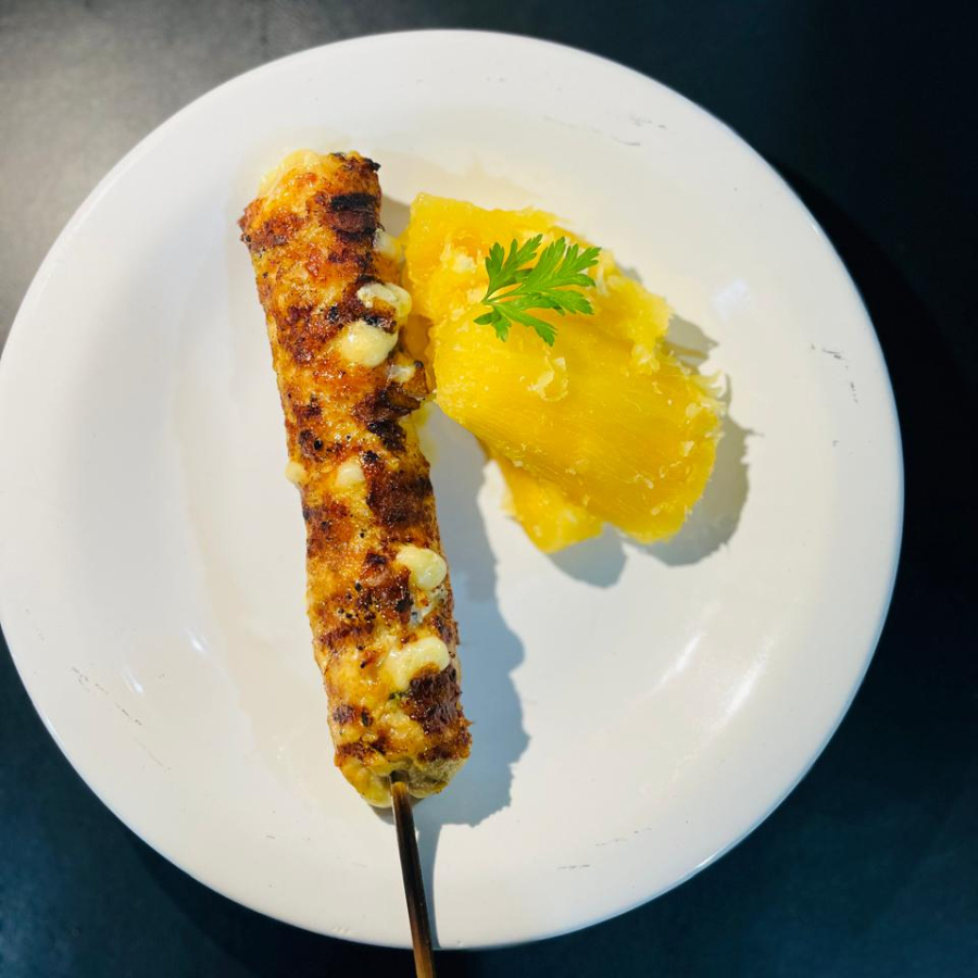 DELICIOSA KAFTA DE FRANGO COM QUEIJO MUSSARELA, JÁ ACOMPANHA MANDIOCA
