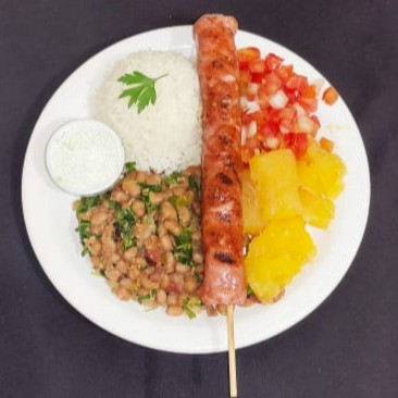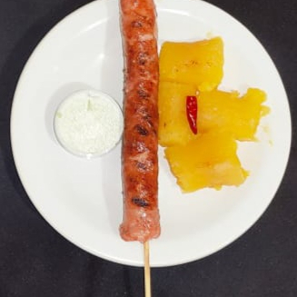 DELICIOSO ESPETINHO DE LINGUIÇA SUINA APIMENTADA, JÁ ACOMPANHA MANDIOCA