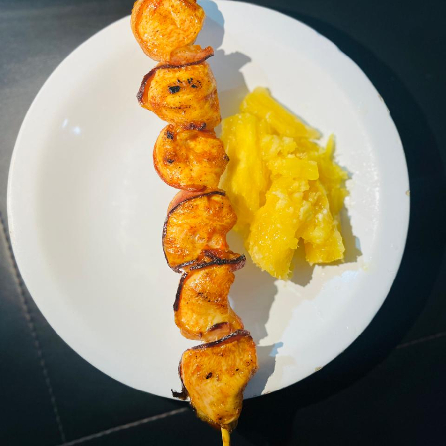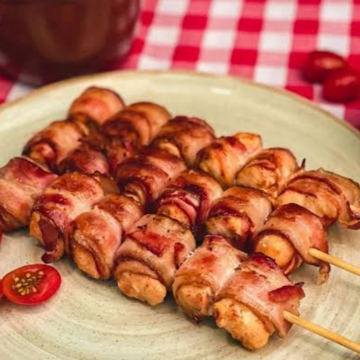 DELICIOSO ESPETINHO DE FRANGO COM BACON, JÁ ACOMPANHA MANDIOCA