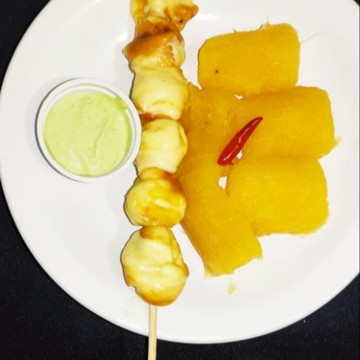 DELICIOSO ESPETINHO DE QUEIJO PROVOLONE, JÁ ACOMPANHA MANDIOCA