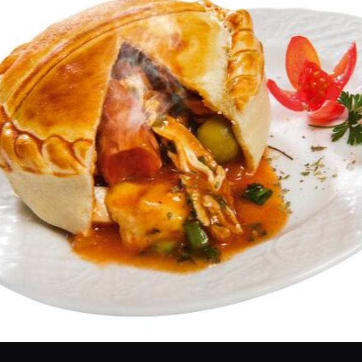 Empadão de frango cremoso com língua de porco, azeitonas, requeijão cremoso, massa folhada que derrete na boca, uma explosão de sabor em cada mordida, peça já o seu
