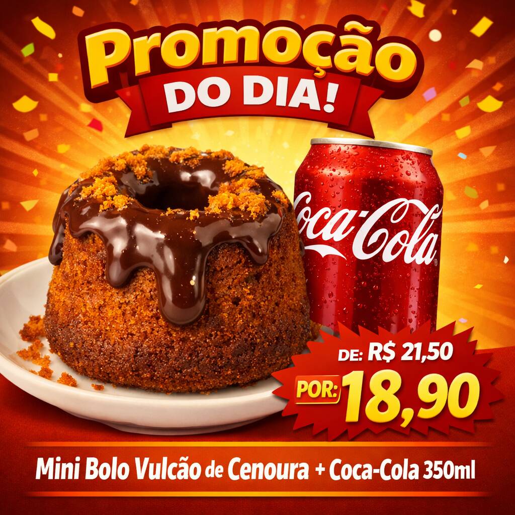 Delicioso combo, bolo de cenoura fofinho com brigadeiro cremoso + coca cola geladinha. Peça já o seu 😱😱💥💥