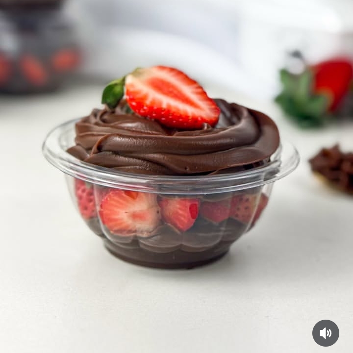 Irresistivel Mini Vulcão Chocolatudo! Bolo De Chocolate Fofinho E Umido, Coberto E Recheado Com Brigadeiro Gourmet Cremoso ,Finalizado Com Um Toque De Granulado De Chocolate E O Frescor Do Morango Uma Explosão De Sabor Em Cada Mordida Esse Doce Promete Conquistar O Coração Dos Amantes De Chocolate,Perfeito Para Qualquer Ocasião