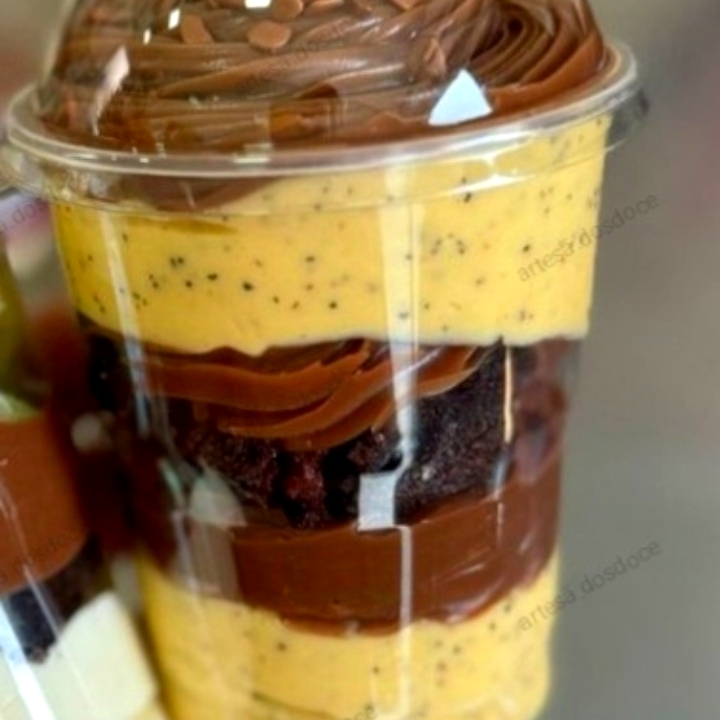 🌟 Copo Pura Felicidade Porque felicidade também se come. Camadas irresistíveis de creme de maracujá, chocolate cremoso, pedaços de Brownier de chocolate macio, preparados de forma artesanal para adoçar o seu dia a cada colherada. .