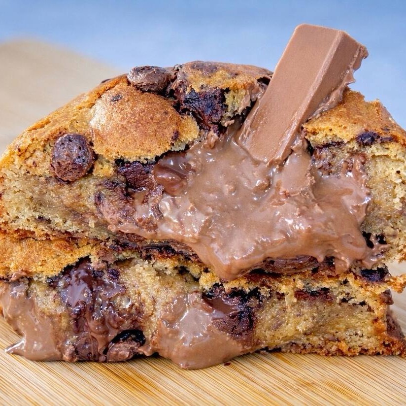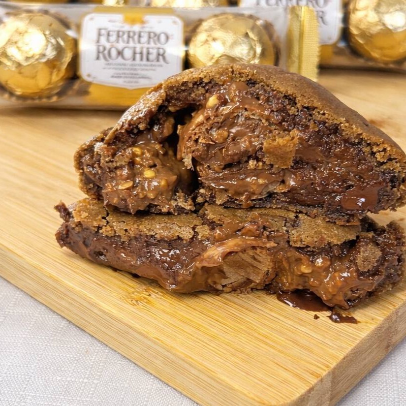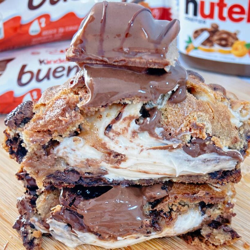 Massa tradicional com recheio de chocolate branco e Kinder Bueno.