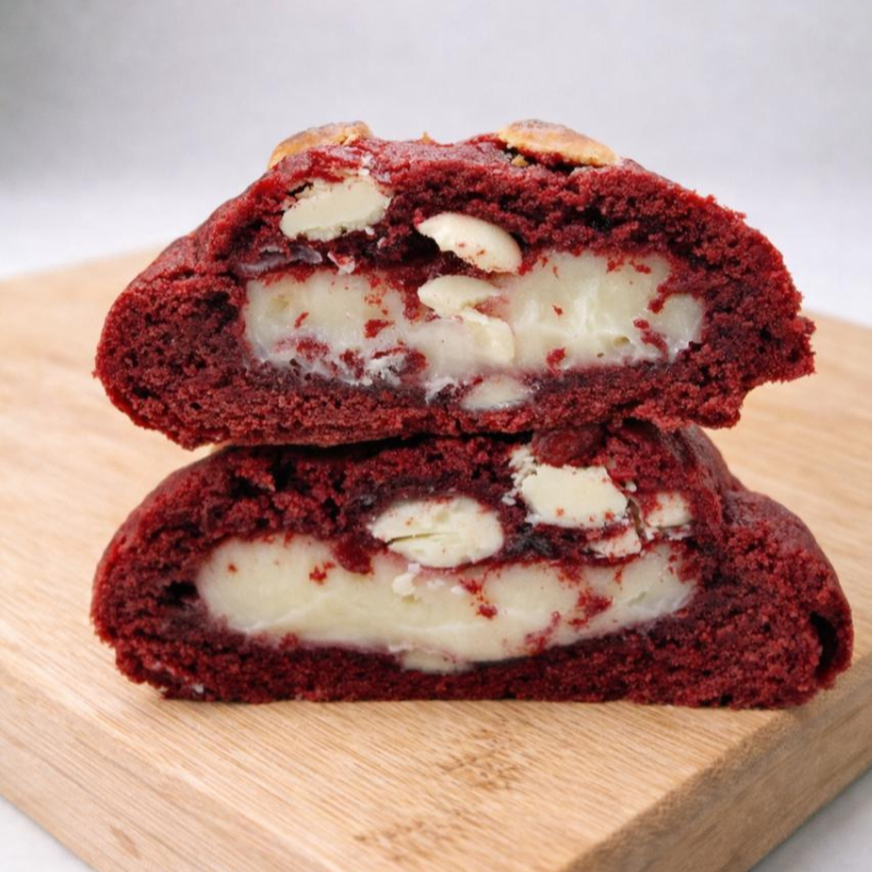 Massa red velvet macia e aveludada com recheio cremoso de brigadeiro branco. Sofisticado e irresistível.