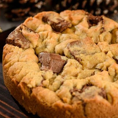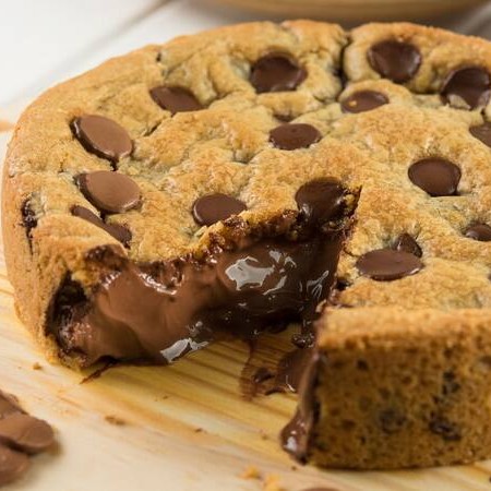 Torta de 1kg de massa branca com gotas de chocolate meio amargo e recheio de Nutella. Perfeita para comer com aquele sorvete. Levamos cerca de 45 min pra finalizar ela e te enviar.