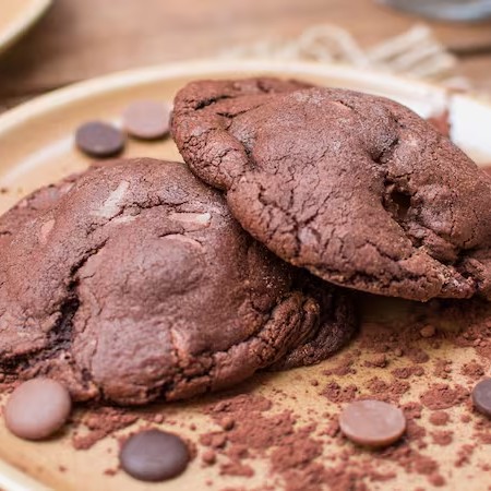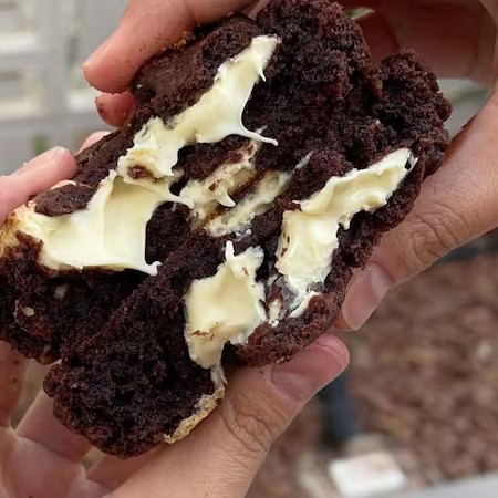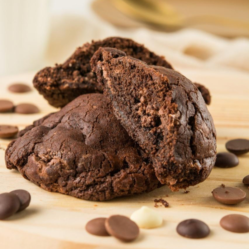Massa deliciosa de cacau e muitas gotas de chocolate branco. Cremoso por dentro e crocantinho por fora, do jeito que tem que ser um bom cookie.