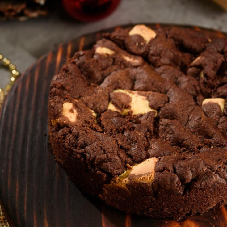 Cookie de 170g feito com quatro tipos de chocolate: 100%, 70%, 50% e 33% de cacau. Parece um brownie, mas melhor, confia em mim!