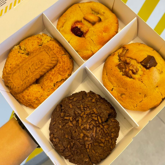 Caixa com 4 cookies de 170g com sabores diversos e diferentes dos outros do cardápio regular. Vai ter q confiar em nossos 7 anos fazendo cookies pra provar isso aquiiii. Todos os meses teremos sabores diferentes. Agora em março temos: lotus biscoff, limão com amora, brigadeiro de panela e nozes com chocolate.