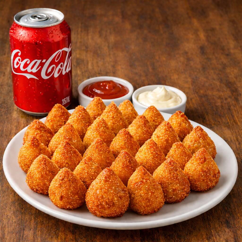 25 Mini Coxinhas Frango + Coca 350ml