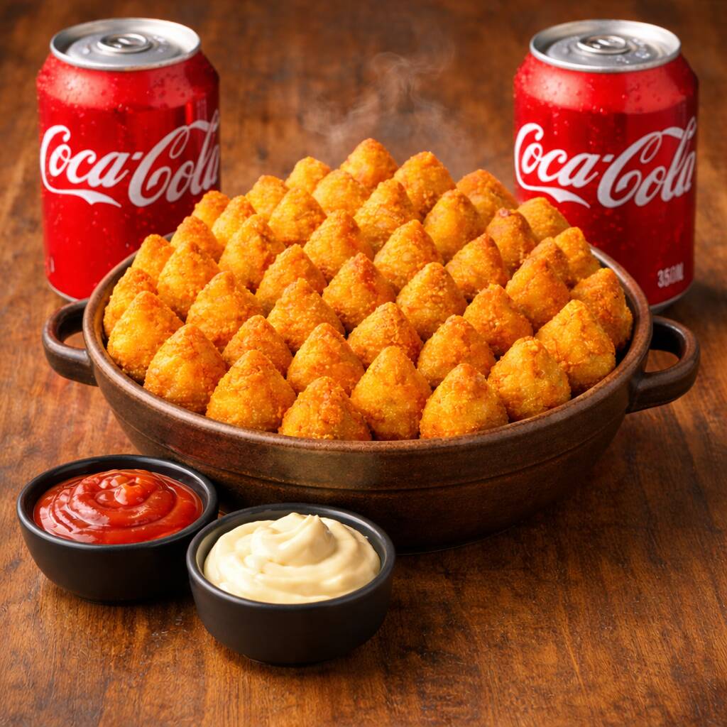 50 Mini Coxinhas Frango + 2 Coca 350ml