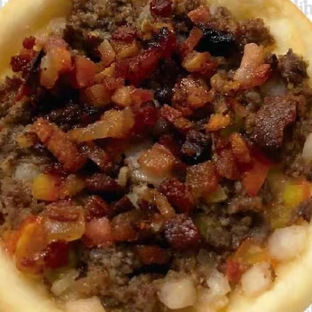 Carne temperada, tomate, cebola e cheddar