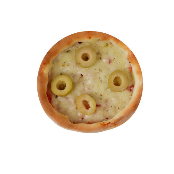 Presunto, queijo mussarela, molho pizza e azeitona.Nao é possivel retirar/acrescentar nenhum ingrediente.