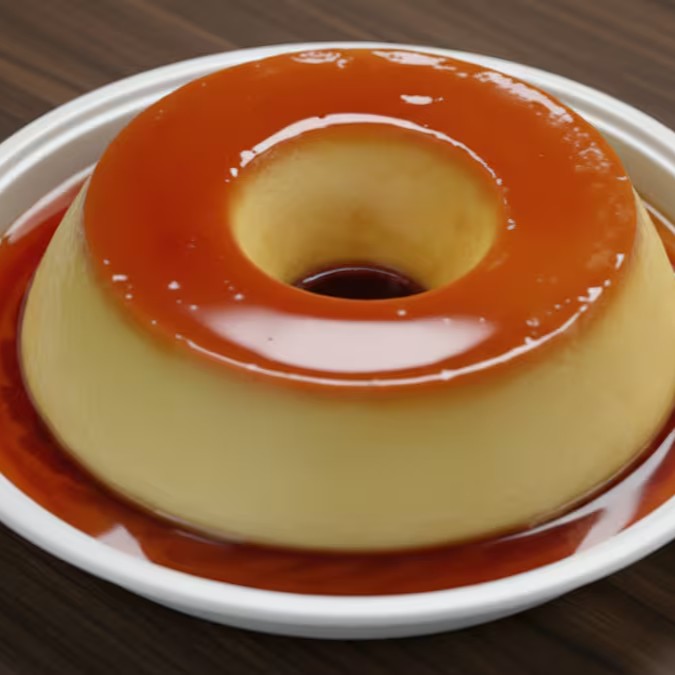 Servido com uma calda de caramelo escura e brilhante que escorre perfeitamente. É a porção individual ideal para fechar a refeição com chave de ouro ou para satisfazer aquela vontade de um doce caseiro.