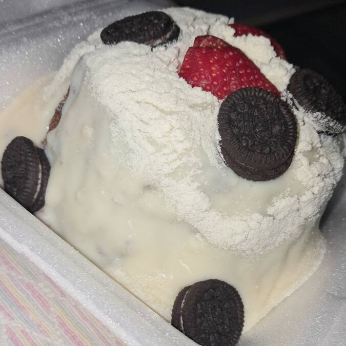 Um bolo irresistivelmente fofinho de chocolate, com massa úmida e intensa, recheado com um creme branco super cremoso feito com Oreo triturado. No centro, uma generosa calda de Oreo que escorre como lava, criando o efeito “vulcão” ao cortar a primeira fatia. Finalizado com mais pedaços de Oreo por cima, é a combinação perfeita de crocância e cremosidade em cada mordida. Ideal para quem ama sobremesas marcantes e cheias de sabor